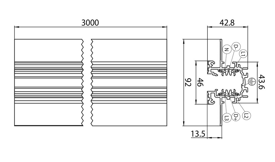 Rail Lytespan Encastré Trimless sans joint apparent Longueur 3m Noir 9000-3/B-TR